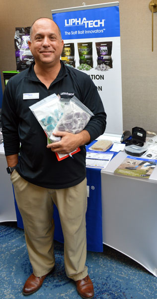 Barry Pitkoff, Liphatech's Northeast District Sales Manager, talks about the company's newest bait options. PHOTO: MARTY WHITFORD