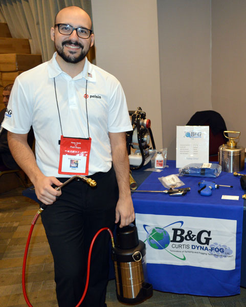 Filipe Ferreira, the Northeast Regional Sales Manager with Pelsis, shows off the B&G sprayer. PHOTO: MARTY WHITFORD