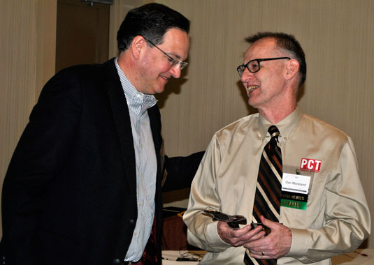 Steve Levy, president & CEO of Bell Laboratories, presents Dan Moreland, publisher of PCT, with UPFDA’s Malcolm Stack Integrity Award.