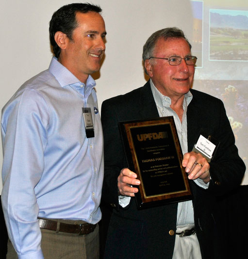 T-IV (Tommy Forshaw IV) presents his father, T-III (Tommy Forshaw III) with the UPFDA’s Lifetime Achievement Award.