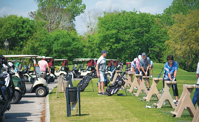 Golfers get in a few practice swings before the event. PHOTO: LOU FERRARO, PARK SOUTH PHOTOGRAPHY