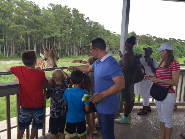 Brock, his family and friends enjoyed feeding the giraffes.