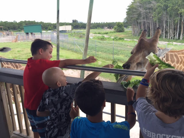 Brock and his friends made fast friends with this giraffe.