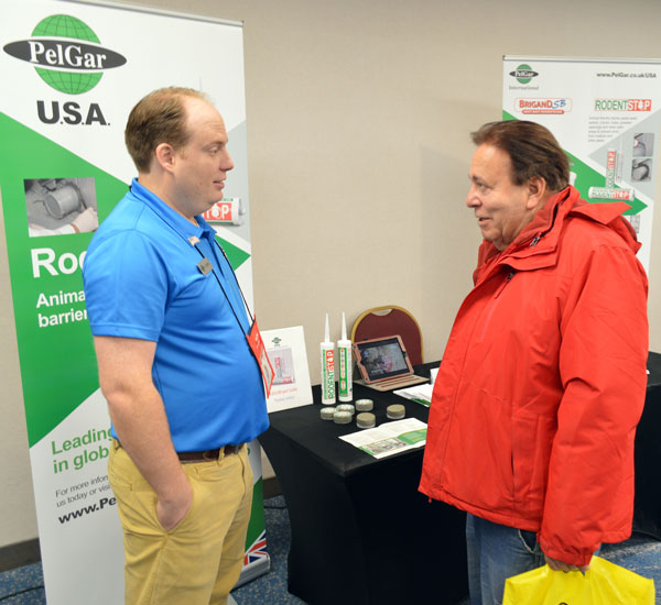 Andrej Branc, PelGar International’s Americas Business Manager, discussing RodentStop at the 2019 New York Pest Expo. PHOTO: MARTY WHITFORD