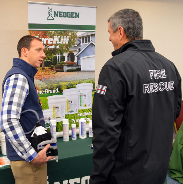Casey Prewitt, Neogen’s Director of Sales, at the New York Pest Expo, talking with an attendee. PHOTO: MARTY WHITFORD