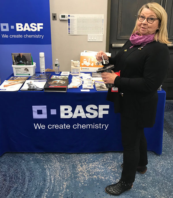 Karen Boniface, Senior Sales Specialist with BASF, discusses some of the company’s latest product offerings. PHOTO: MARTY WHITFORD