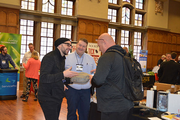 J.T. Eaton’s Dale Baker, far left, answers product related questions during exhibit hall hours. Photo: PMP staff