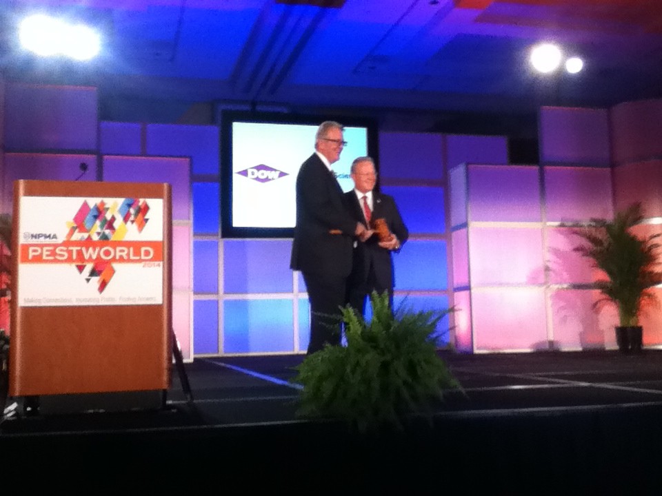 The gavel passes to 2014-2015 National Pest Management Association President Billy Tesh during the Opening General Session on day two of the event.