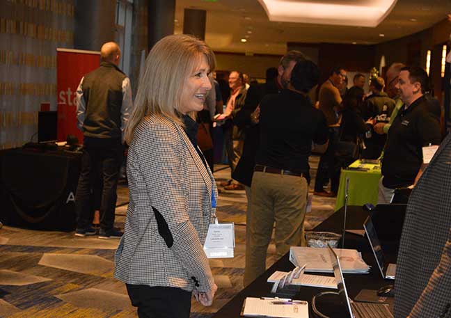 Debbie Hughes of LabelSDS.com chats with a fellow service supplier during exhibit hours. Photo: Diane Sofranec