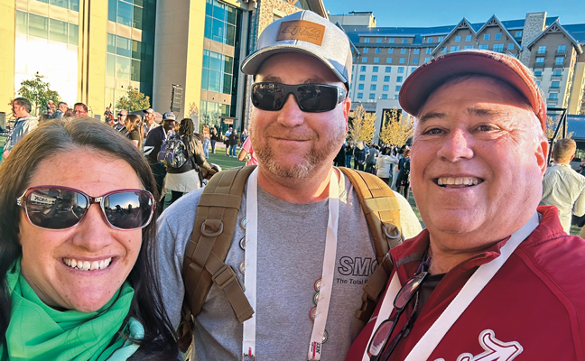 Selfie smiles: The selfies were prolific at PestFest, like this one with MGK Digital Marketing Communications Manager Stacy Emond and the son-and-father duo of Justin and Floyd Rose, Rose Termite and Pest Control, Fairhope, Ala. PHOTO: MGK