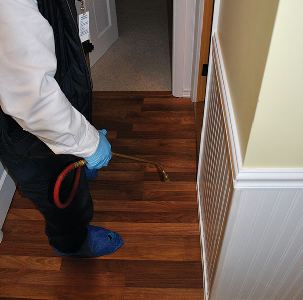 Finally, Lastafka spot-treats some areas around nearby baseboards as a preventive measure. Photo: Will Nepper