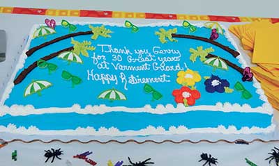 A festive cake celebrates the retirement of Dr. Gerry “Doc” Wegner, BCE, technical director and staff entomologist of Varment Guard Environmental Services and ProGuard Commercial Pest Solutions. Photo: Heather Gooch