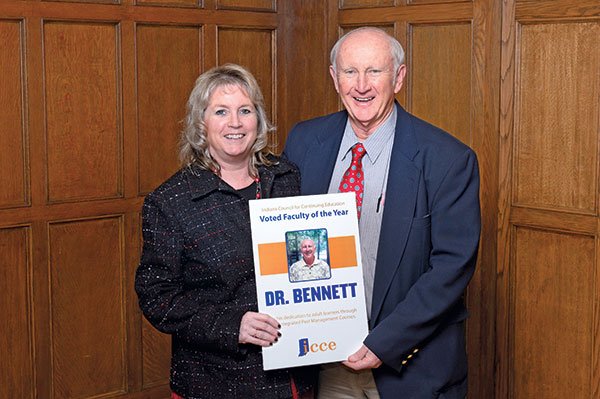 Robin Cunningham, CMP, presented Dr. Gary Bennett with the Faculty of the Year Award from the Indiana Council of Continuing Education.