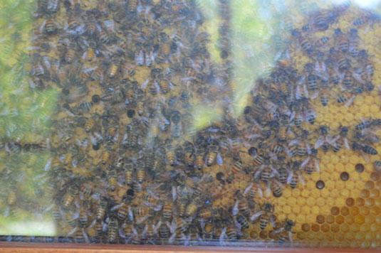 Active honey-producing hives on display at Bayer’s Bee Care Center.