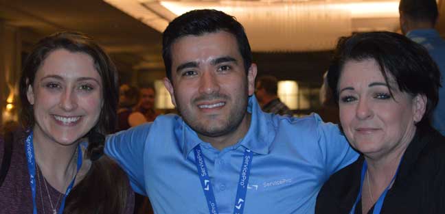 Ashley Sylvester of Exodus Exterminating, ServicePro’s Alex Castillo and Danette Pollard of That Guy Services, enjoy a relaxing evening before ServSuite University gets underway.