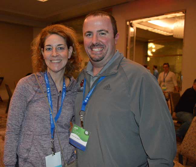 Kendra Snyder of Quest Termite & Pest visits with fellow Pennsylvania pest management professional Jeff King of The Pest Rangers. PHOTO: DIANE SOFRANEC/PMP