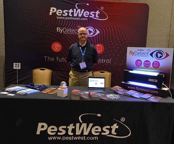 PestWest’s Dr. Stuart “Doc” Mitchell was on hand to discuss the company’s FlyDetect solution. Photo: Diane Sofranec